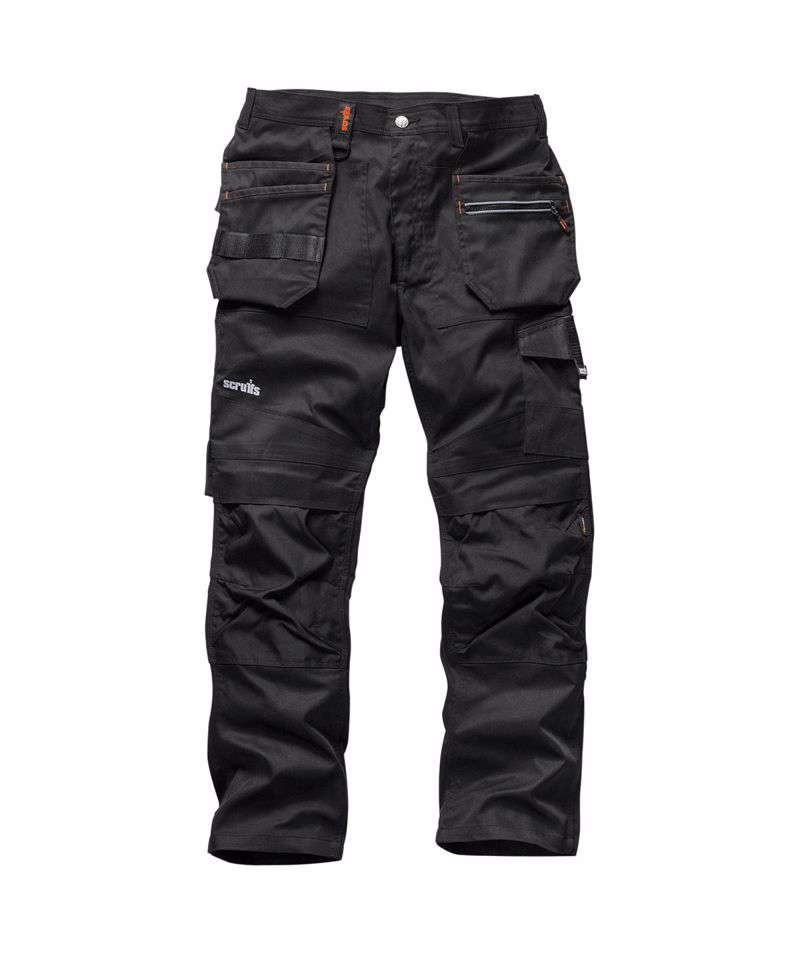 Durable twill cotton work trousers with built-in stretch for comfort and flexibility. Slim fit with comfort gusset for freedom of movement. Abrasion-resistant, top-loading Cordura® knee pockets for enhanced durability. Features holster, cargo, rule, mobile phone and secure, zipped pockets. Hammer loop, tool loops and D-ring for tool and accessory storage. Hard-wearing canvas fabric hem and pocket reinforcements for enhanced durability. Triple-stitched seams. Certified Sedex.