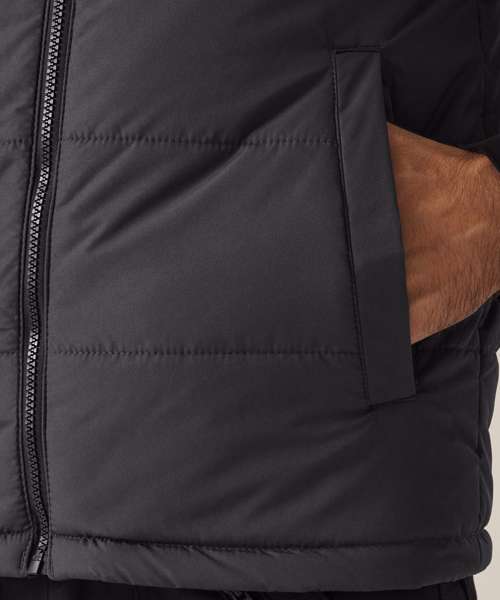 Water-repellent polyester micro poplin. Thermo-guard 180gsm insulation. 2 lower pockets. Concealed inner zip for embroidery access.