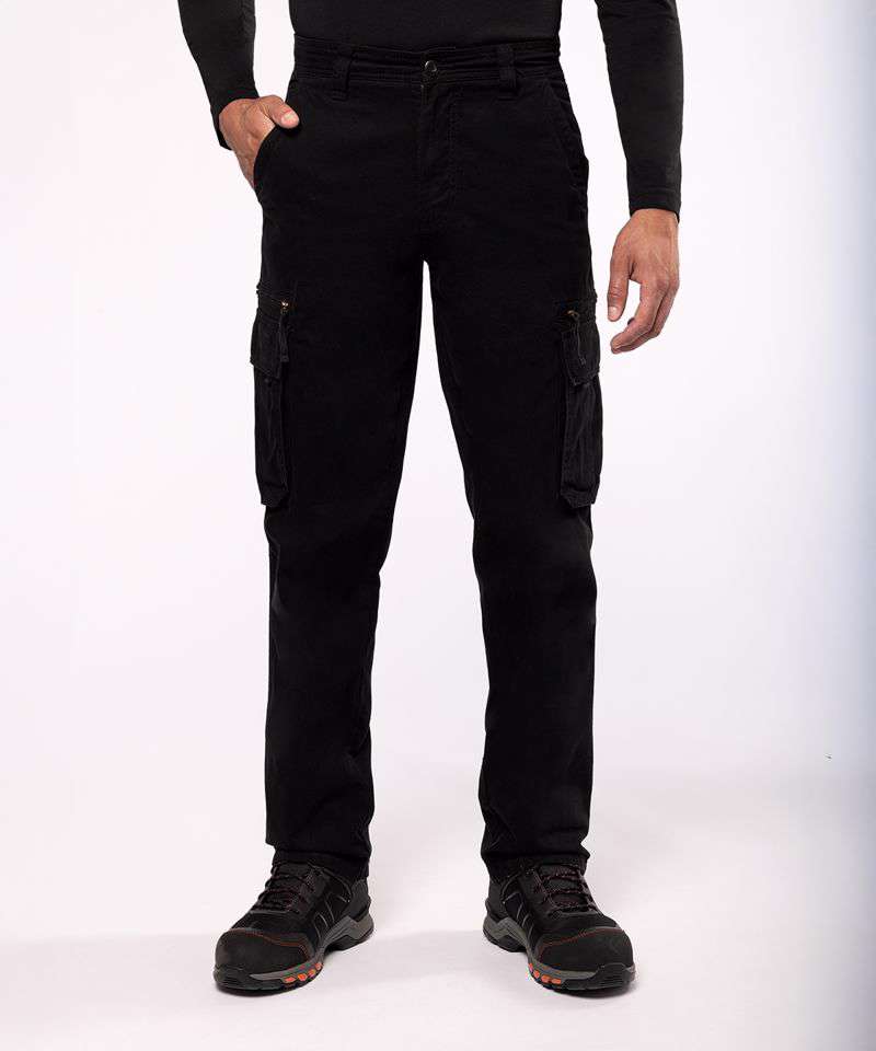 100% cotton. Zip and button fastening. 2 side pockets. 2 zipped piped pockets. 2 bellows pockets with tear release flap fastening. 2 rear patch pockets with tear release fastening. This product has been specially treated and appears intentionally aged. This manufacturing process results in colour variations between products and makes each piece unique.