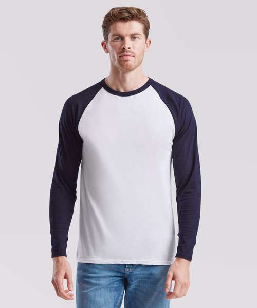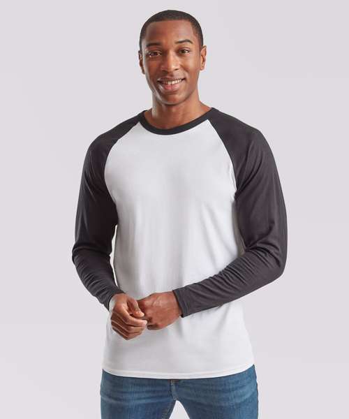 Featuring a sporty contrast colour cotton/Lycra® rib, neck and raglan sleeves, Fruit’s Valueweight long sleeve baseball T combines a classic look with a contemporary tailored fit that’s ideal for retail, licensing and tourism applications. Made from 100% cotton with a fine knit gauge for enhanced printability, you can make the Valueweight long sleeve baseball T yours, anyway you want.
