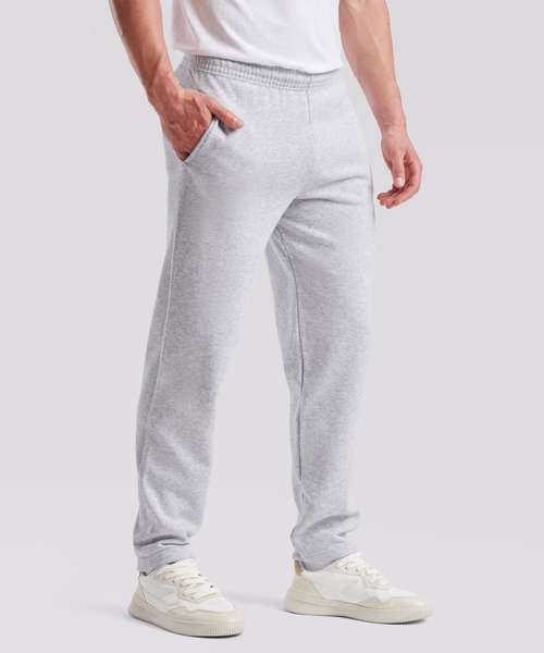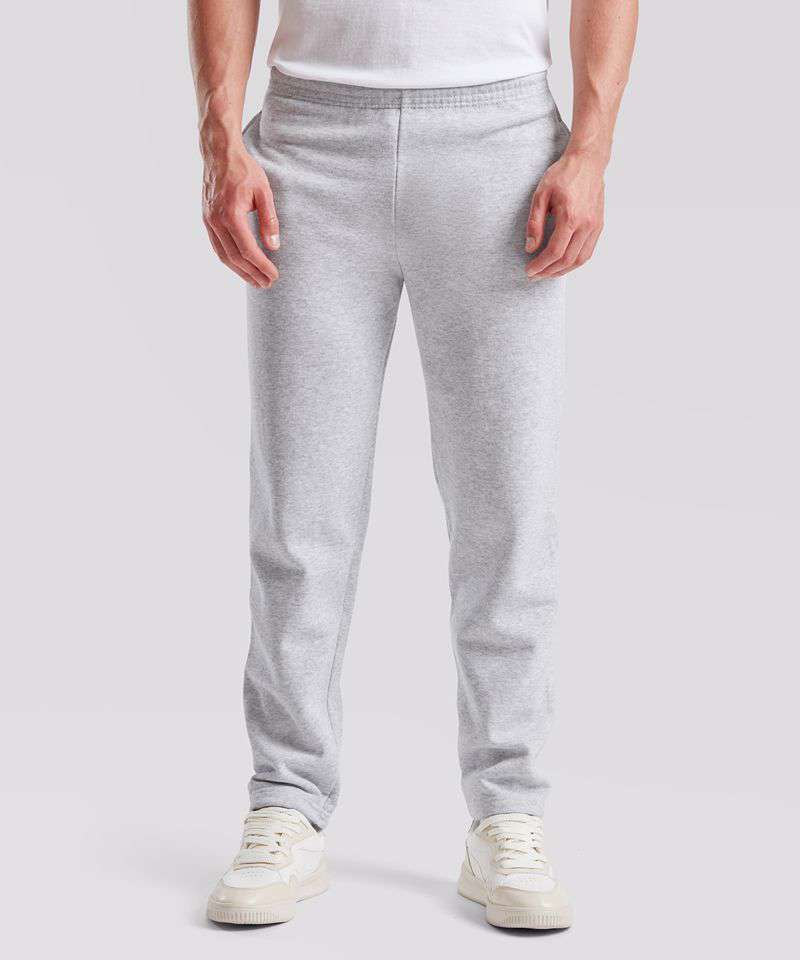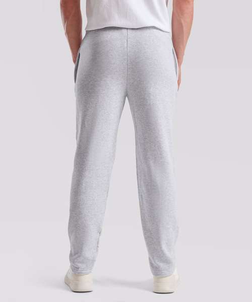 Cotton rich fleece. Fashionable open hem. Front and back rise differential for a better fit. Elasticated waist with self-coloured drawcord. No outside leg seam for maximum printability. Fashionable open hem. Side pockets.