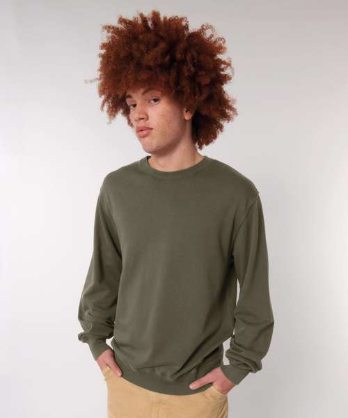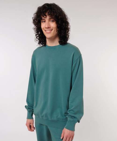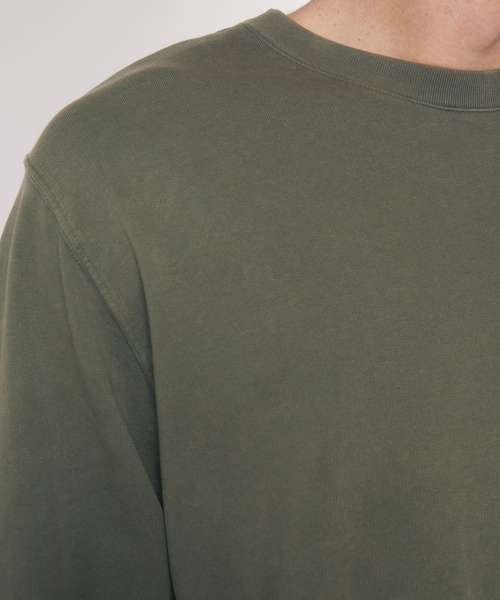 Unisex medium fit garment-dyed crew neck sweatshirt. Set-in sleeve. 1x1 rib at neck collar, sleeve hem and bottom hem. Inside single Jersey back neck tape. Self-fabric half-moon at back neck. Single-needle topstitch at neck collar. Armhole, sleeve hem and bottom hem with twin-needle topstitch. Slight shading on seams to give a washed look. Garment-dyed product: each garment may vary in appearance, colour may bleed, follow our care label. Read carefully print recommendations.