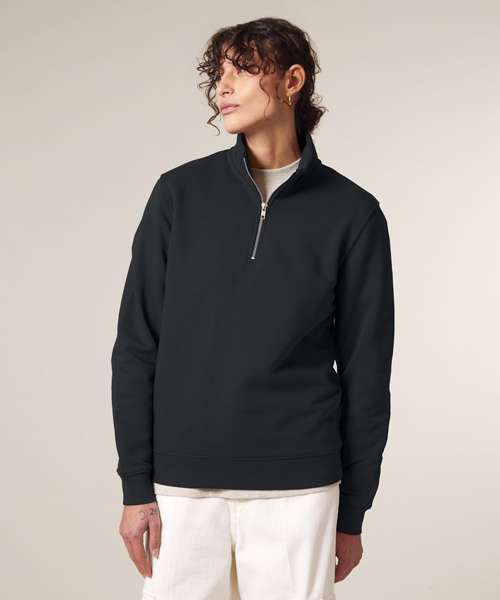 Premium, unisex, quarter-zip sweatshirt in 85% organic cotton and 15% recycled polyester. Medium fit, 280gsm. Ideal for corporatewear. Excellent printability.
