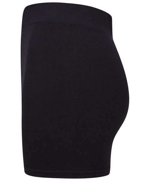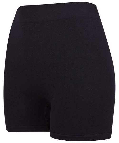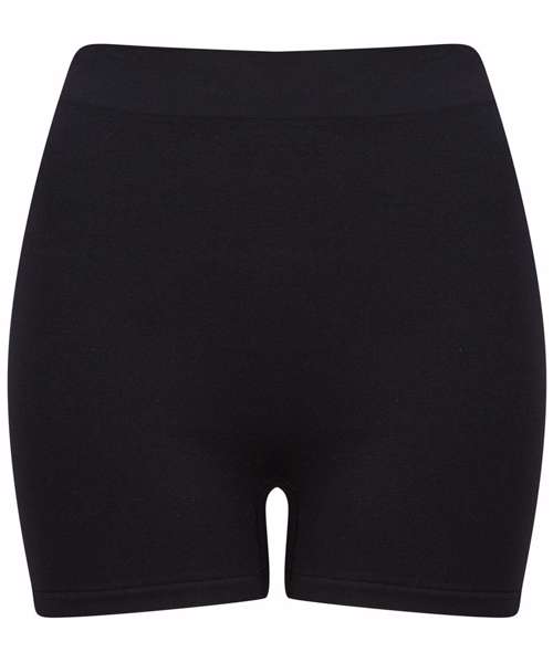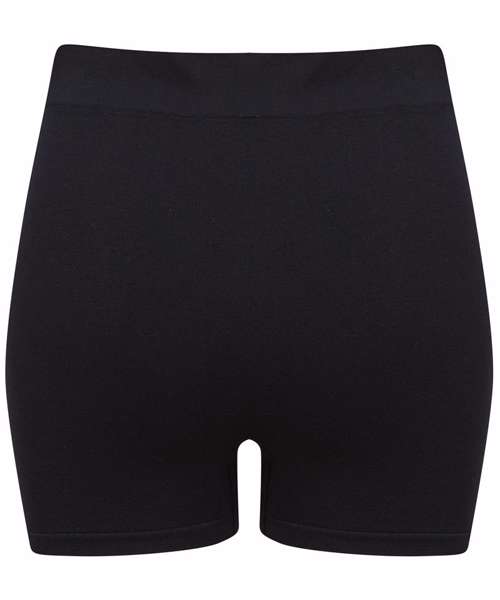 Fitted, high-waisted stretch shorts in melange fabric. Seamless knit for comfort. Blind stitching at hems and grown-on waistband. Tombo tear-out label.