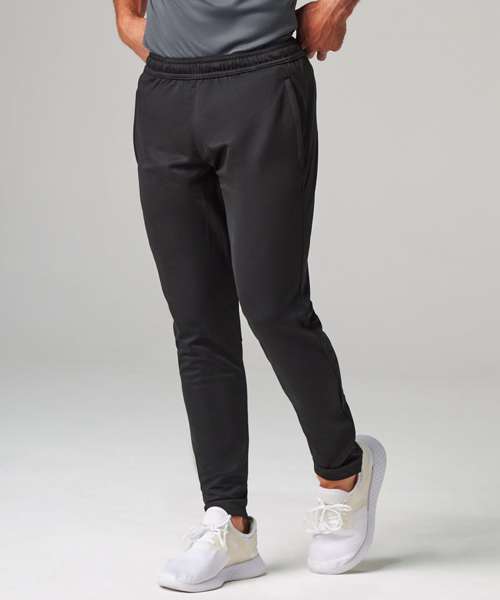 Slim tapped leg, twin stitched cuff with zip. 2 X side entry pockets, fully elasticated waistband with inner drawcord.