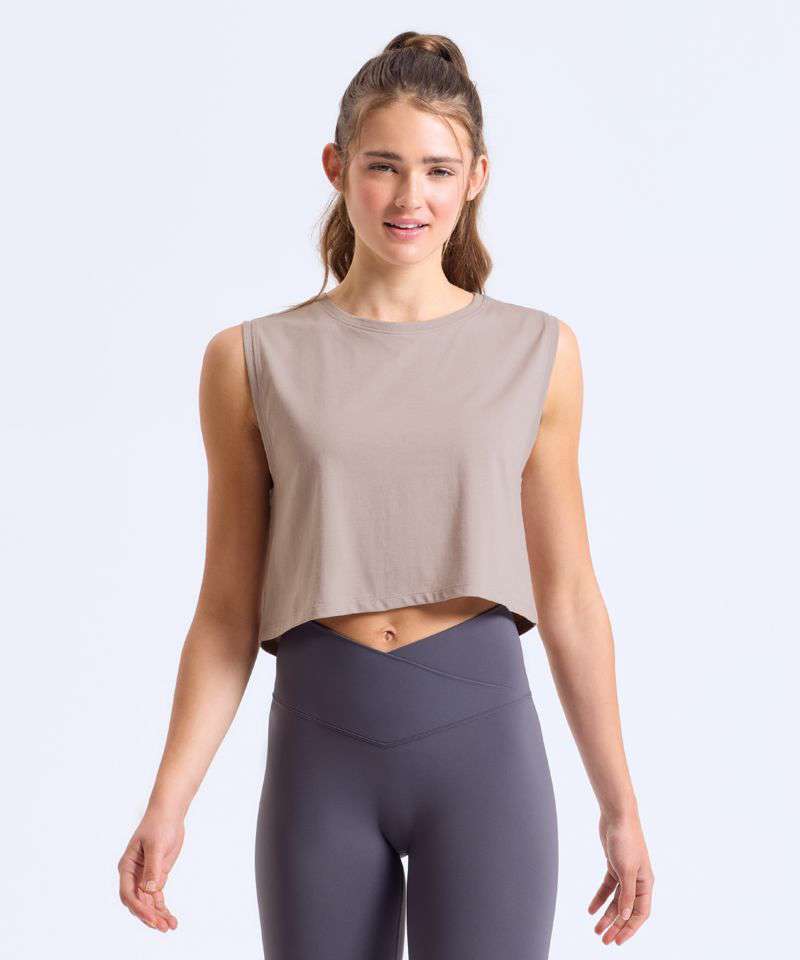 Cropped tank. Relaxed fit. Crew neck. Certified organic cotton.