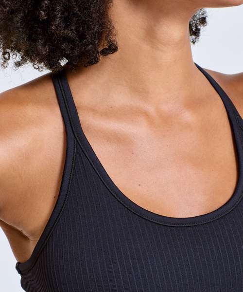 Seamless vest. Contrast detailing. Body sculpting design detailing. Racerback. Hidden sports bra inner with removable bra pads for additional support. Ribbed stretch fabric. Medium impact. We recommend using block out vinyl and inks.Product contains no branded neck or waist label. Removable Kimble or looped garment tags. Inner seam label holds important product information on one label with a second label containing brand information which can be cut-away.