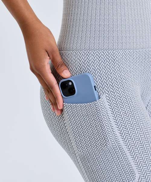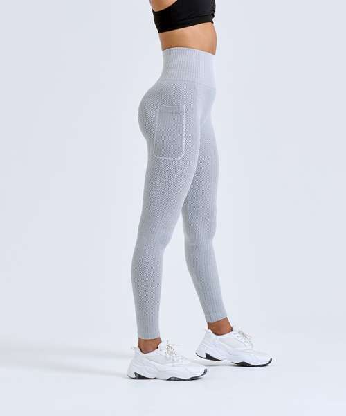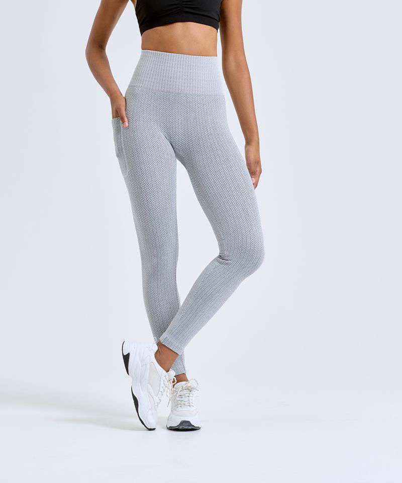 Knitted leggings with minimal seams. Full-length leggings. Soft-stretch fabric. Pocket to leg. Deep waistband. Herringbone pattern. We recommend using block out vinyl and inks.Product contains no branded neck or waist label. Removable Kimble or looped garment tags. Inner seam label holds important product information on one label with a second label containing brand information which can be cut-away.