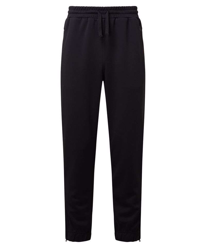 Elasticated waistband. Classic fit. Cord-tie fastenings to waist. Zip pockets to sides. Elasticated cuffs with zip openings to side of legs. Made with recycled polyester, Spun dyed technology. Spun dye melts colour pigments and recycled polyester together, creating coloured fibres using fewer chemicals, less water and less CO2. Spun dyed fabric also improves the colour-fastness of garments. We recommend using block out vinyl and inks.