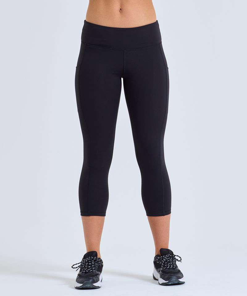 3/4-length leggings. Soft-stretch fabric. Elasticated waistband. Black inner waistband and coin pocket. Side panels to legs with hidden insert pocket. Recycled Polyester. We recommend using block out vinyl and inks.Product contains no branded neck or waist label. Removable Kimble or looped garment tags. Inner seam label holds important product information on one label with a second label containing brand information which can be cut-away.