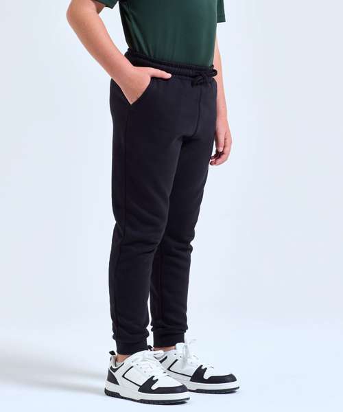 Made from soft cotton and recycled polyester these kid’s slim fit joggers are perfect for dance classes, P.E lessons, sports clubs or as casual everyday wear. Comfortable to wear, these joggers have an elasticated waistband with self-coloured ties and ribbed cuffs.